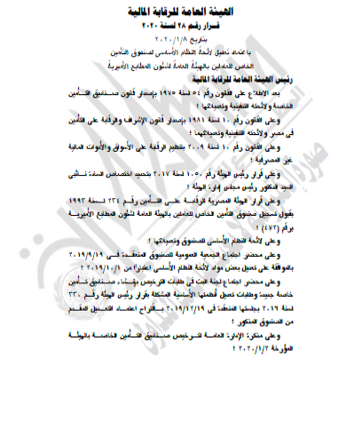 غير مصنف الهيئة العامة للرقابة المالية قرار مجلس إدارة الهيئة رقم 9 لسنه 2020م … وقرار رقم 28 لسنه 2020م By Dawod Dawod on فبراير 19, 2020 - Category : غير مصنف - Tags : 0