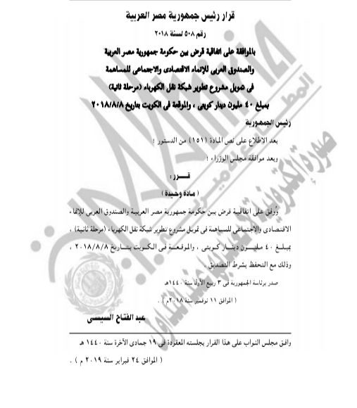 غير مصنف إتفاقية قرض بين جمهورية مصر العربية والصندوق العربي للإنحاء الأقتصادي والإجتماعي للمساهمة فى تمويل مشروع تطوير شبكة نقل الكهرباء ( مرحلة ثانية ) By Dawod Dawod on فبراير 20, 2020 - Category : غير مصنف - Tags : 0