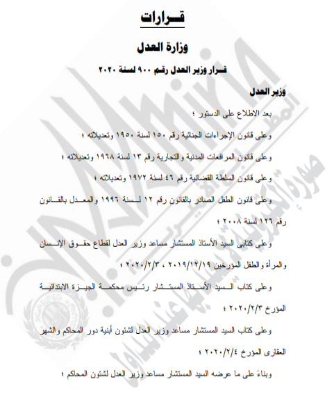 غير مصنف قرارات وزارة العدل – قرار وزير العدل رقم 900 لسنه 2020م By Dawod Dawod on فبراير 24, 2020 - Category : غير مصنف - Tags : 0