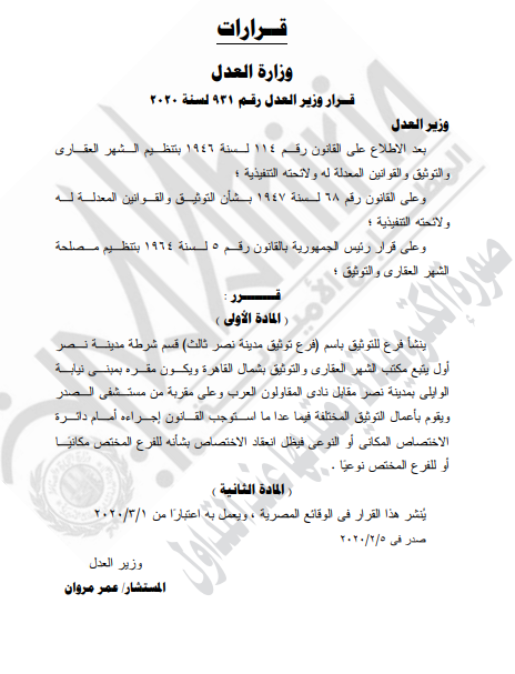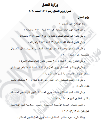 غير مصنف قرارات وزارة العدل . قرار وزير العدل رقم 931 لسنه 2020 By Dawod Dawod on فبراير 23, 2020 - Category : غير مصنف - Tags : 0