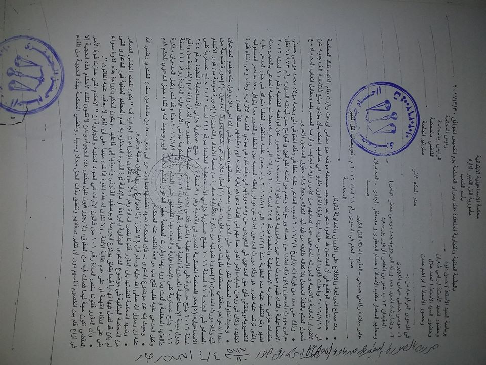 حكم تعويض عن الاضرار الماديه والادبيه ومورثه بمبلغ ١٠٠ الف جنيه